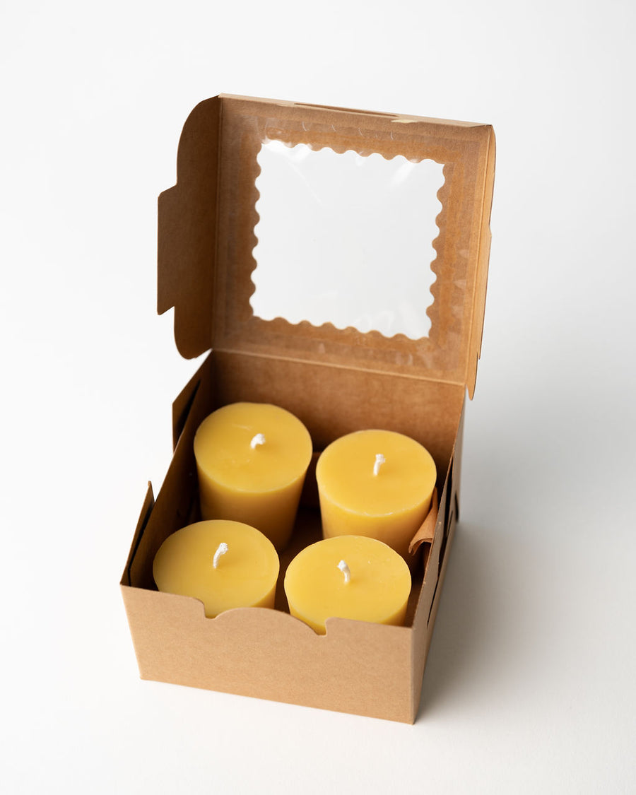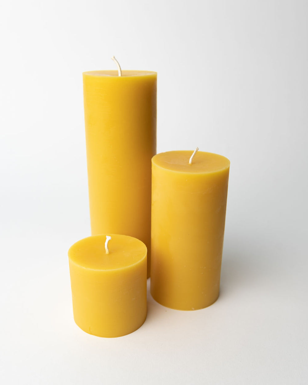 Our beeswax candles are only 100% pure canadian beeswax, with a 100% natural cotton wick dipped in beeswax. Pure beeswax burns longer and cleaner than paraffin or even soy candles. Each lovingly handcrafted beeswax candle has the natural, sweet smell of pure beeswax.